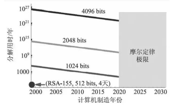 当量子计算机出现后,RSA算法的基础就被动摇了。1994年发表了质因数分解的量子算法——Shor算法,他把分解质因数的问题转化为寻找模指数电路的周期问题,这大幅缩短了破解RSA和椭圆曲线密码的时间。