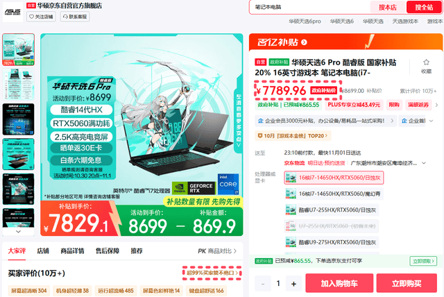 那么,咱们消费者如何区分平台上的国补与政补?其实看补贴类型与额度就行,其中国补通常需要“抢资格”,且补贴额度较大,如家电最高补贴2000元,手机最高补贴500元;而政补则无需抢资格,但补贴额度较小,且往往与平台其他优惠叠加使用。今年的双11大促,在国补/政补的双重刺激下,不少消费者选择在此时换购笔记本电脑。尤其是随着CPU和GPU的更新迭代,以及《怪物猎人:荒野》、《战地6》、《光与影:33号远征队》等3A游戏大作的频出,今年的游戏本市场堪称“游戏大年”。