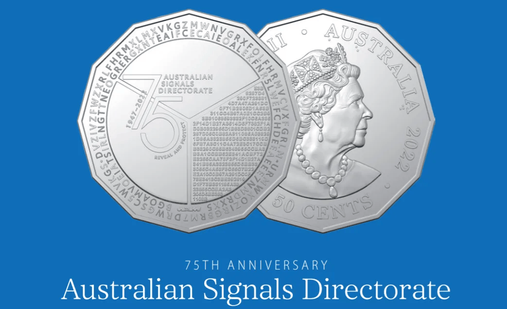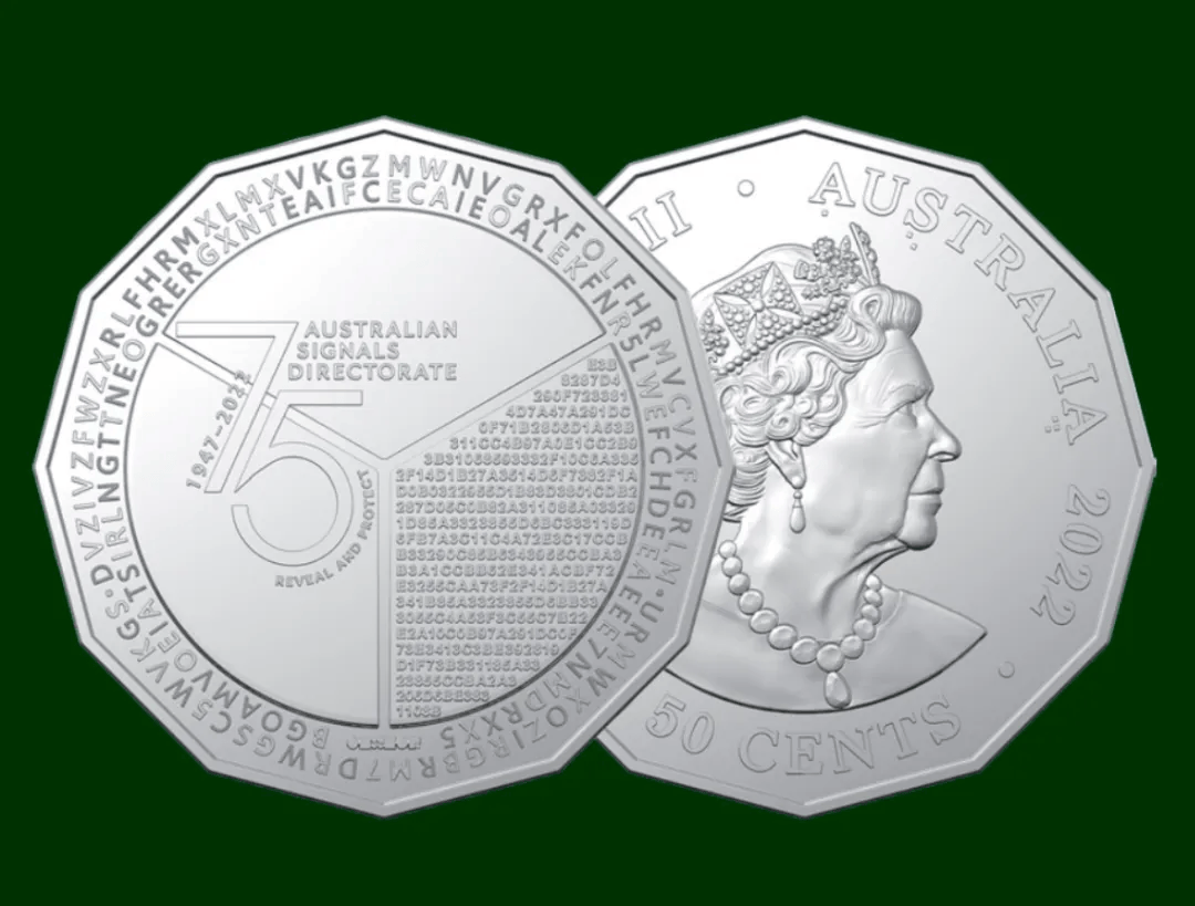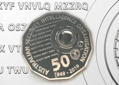 2019年,为庆祝澳洲安全情报组织(ASIO)成立70周年,皇家铸币厂曾首次推出2万枚藏有“密码”的新版50分硬币,并邀请卖家破解硬币上的密码。