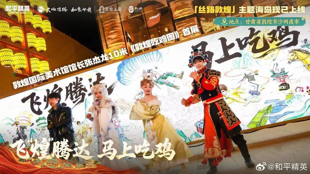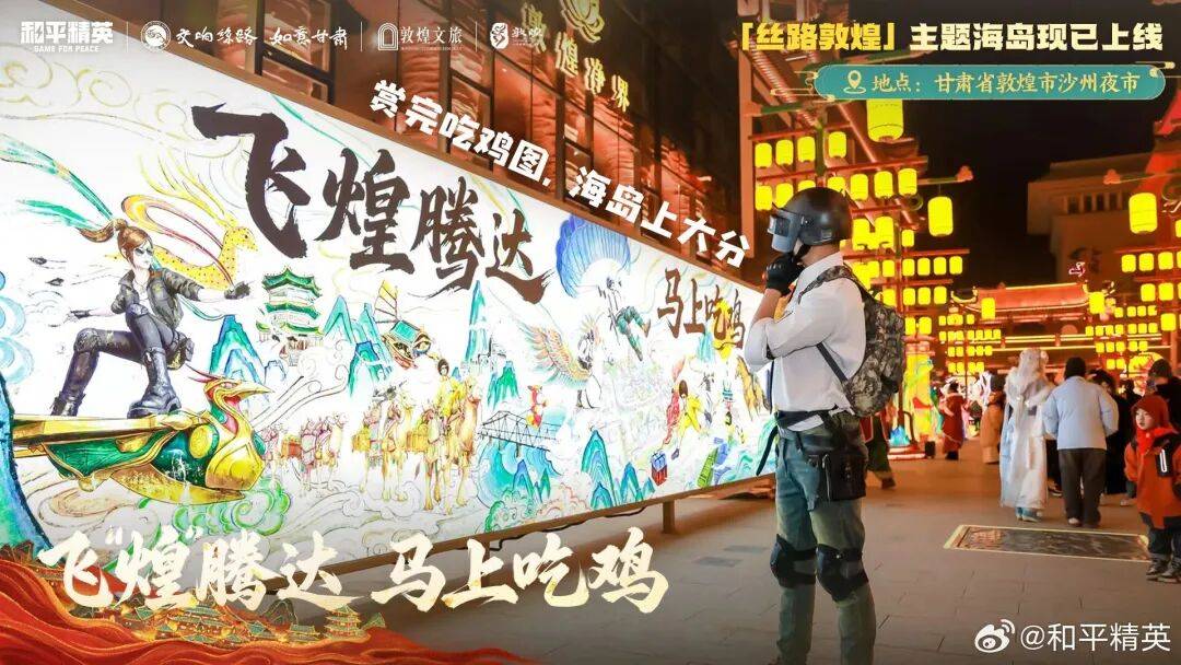 从线上场景复刻到线验延伸,从文化符号植入到潮流玩法创新,这场跨越虚拟与现实的文旅盛宴,不仅为敦煌文化传播开辟了年轻化路径,更验证了国民级游戏的文化影响力与社会价值。线上,甘肃省文化和旅游厅、敦煌文旅集团官方授权《和平精英》主题海岛内植入敦煌玉门关、敦煌国家雅丹地质公园(孔雀玉立)、鸣沙山月牙泉等景点,甘肃省文化和旅游厅、敦煌文旅集团等多文旅号联合宣发;线下,《和平精英》以超人气的敦煌热门景区为核心,合作敦煌文旅沙洲夜市灯会、携手敦煌壁画大师打造十米敦煌吃鸡图线下展出、百驼鸣沙山祈福等联动事件同步开启,打造多场景联动事件,打造有年味、有文化内涵的新春吃鸡新体验。